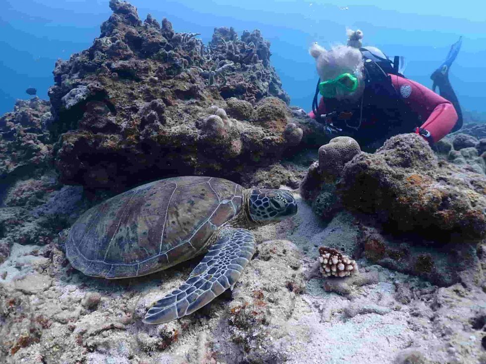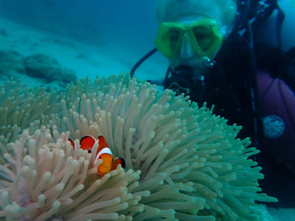 Allí conviven con todo tipo de especies de aguas cálidas: Peces Loro, León y Payaso e infinidad de coloridos Blénidos… Escurridizos Krait Anillados, imponentes cardúmenes de Anthias, Tiburones de puntas blancas e incluso el majestuoso Tiburón ballena, Ballenas Jorobadas acompañadas de sus crías y Tiburones Martillo, por poner algunos ejemplos.