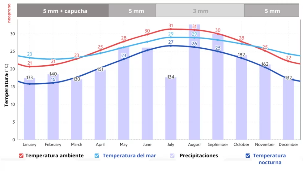 La visibilidad resulta impresionante, hasta 50m; aguas cristalinas que potencian los colores espectaculares del arrecife de coral y permiten disfrutar a buceadores de todos los niveles, con profundidades máximas de 30m.